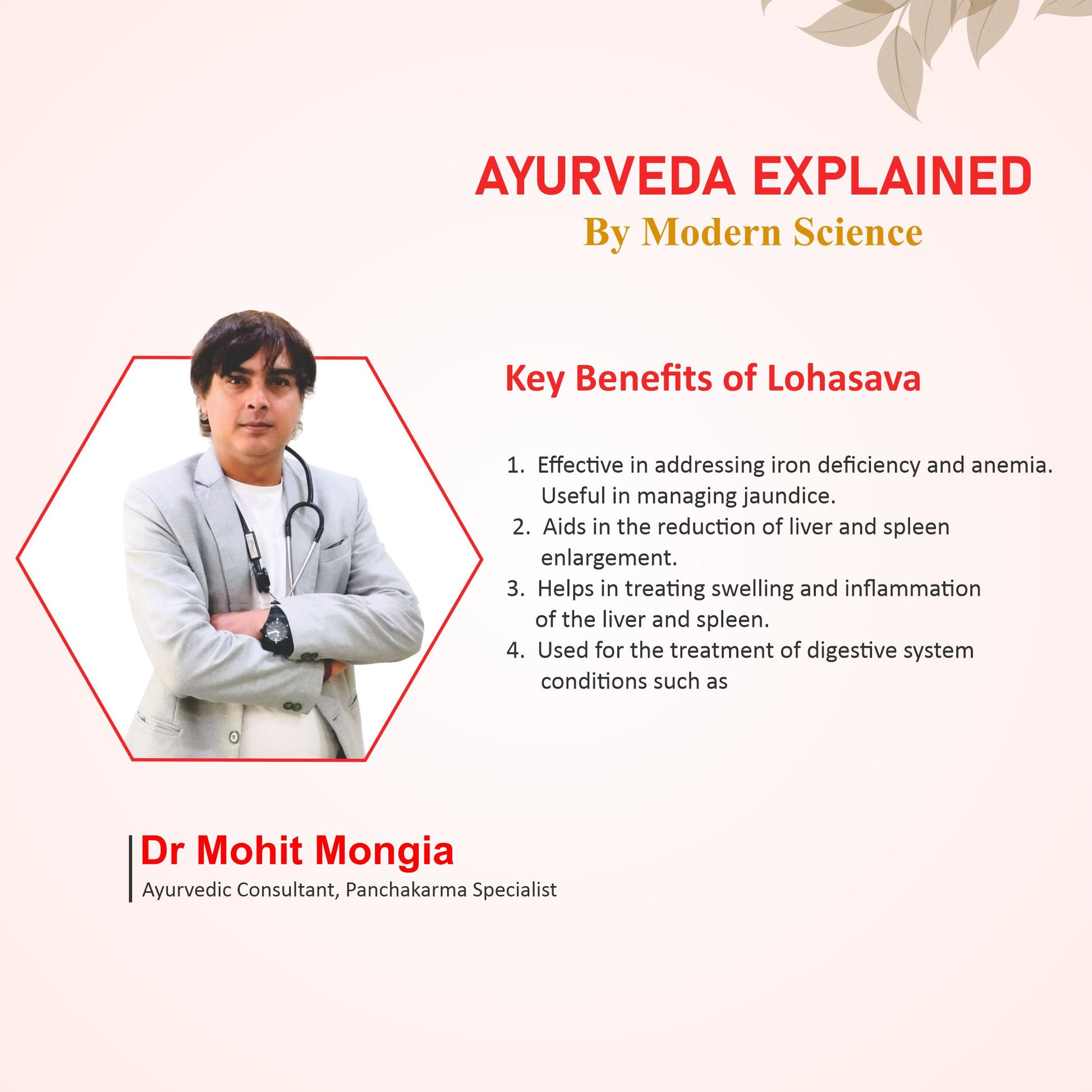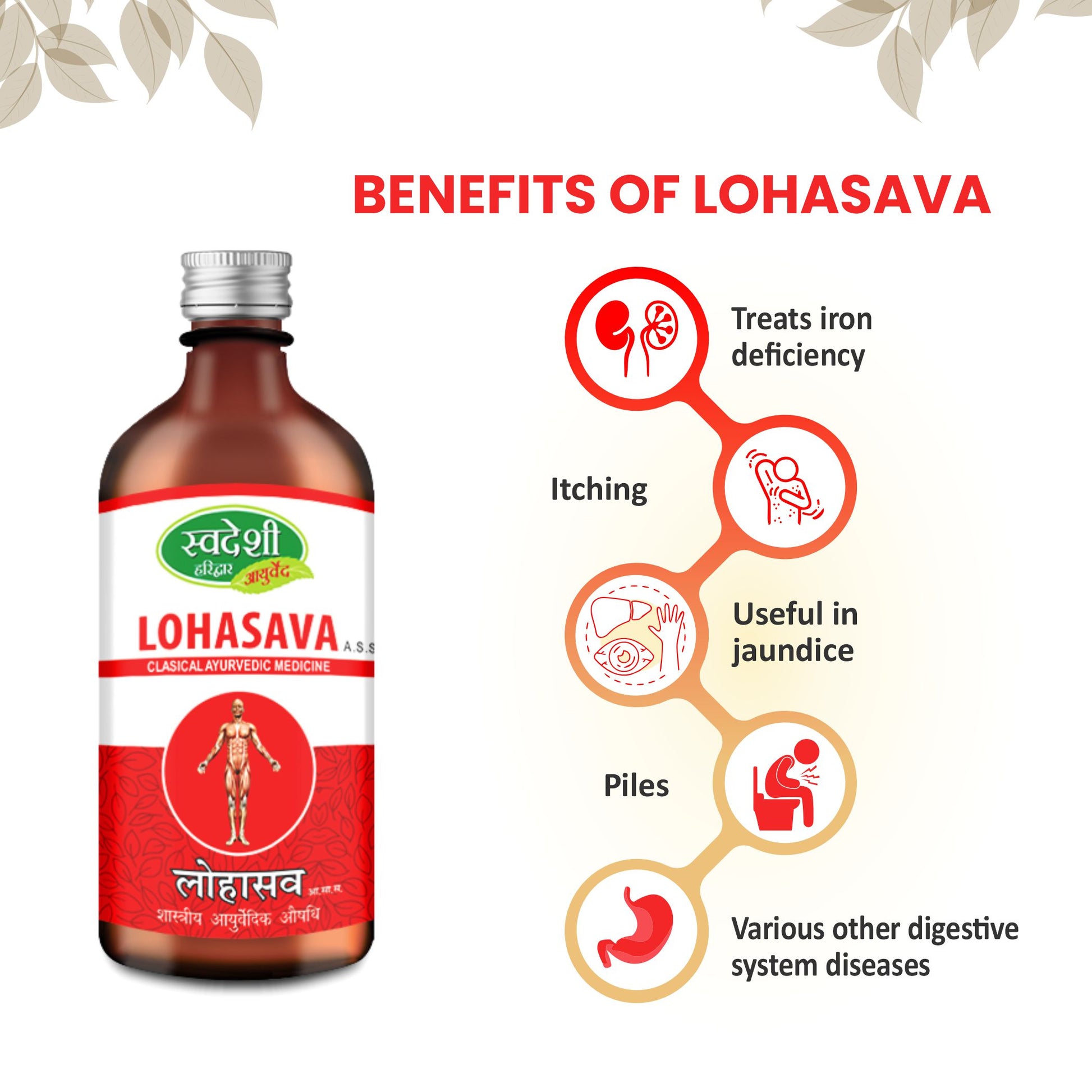 लौह की कमी के उपचार में अपनी प्राथमिक भूमिका के अलावा, लोहासवा कई स्वास्थ्य लाभ प्रदान करता है। यह यकृत और प्लीहा के स्वास्थ्य का समर्थन करता है, जिससे यह पीलिया और अंग वृद्धि जैसी स्थितियों के लिए फायदेमंद होता है। इसके अलावा, यह सूजन और जलन को कम करने में सहायता करता है, खुजली, बवासीर, फिस्टुला और ग्रहणी (दस्त) जैसे पाचन विकारों से राहत प्रदान करता है।