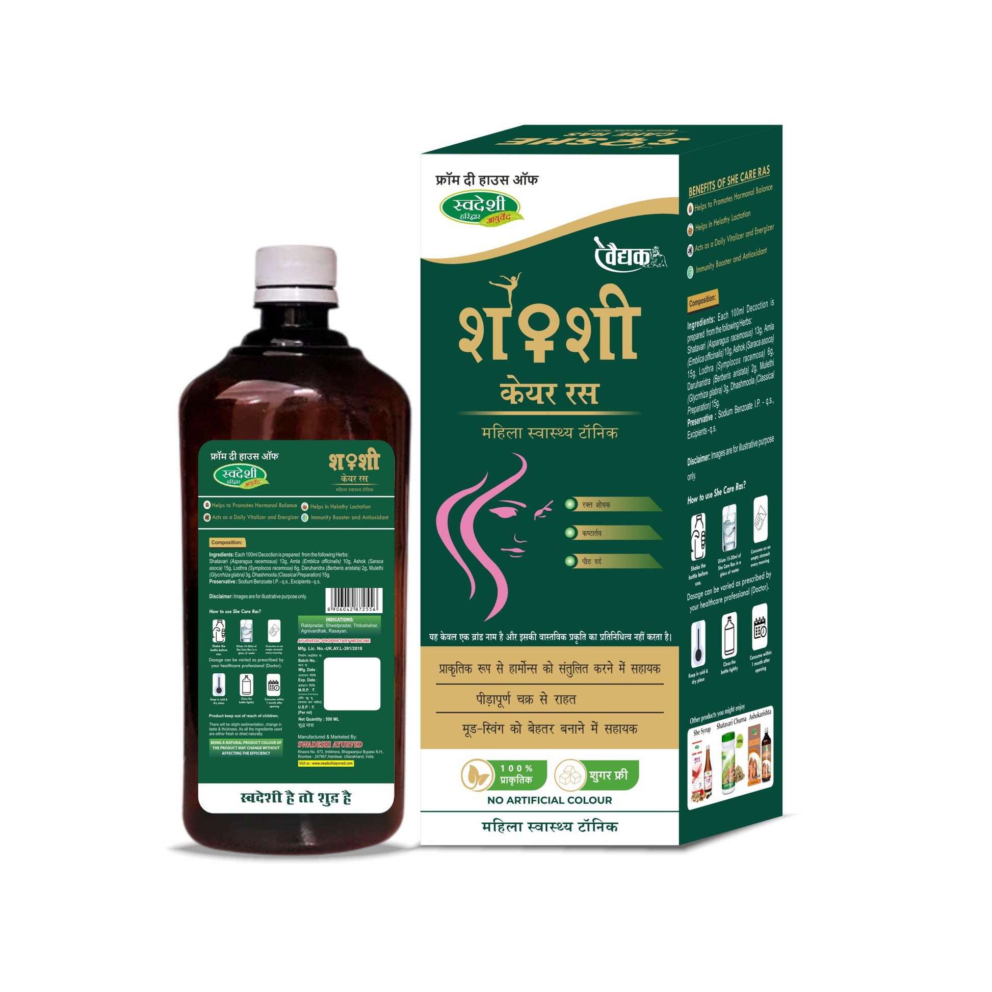 स्वदेशी शी केयर रस पेश है, जो शतावरी, लोधरा, दशमूल और अशोक जैसी आयुर्वेदिक जड़ी-बूटियों का मिश्रण है। यह रस प्राकृतिक रूप से हार्मोन को संतुलित करने, मूड स्विंग को बेहतर बनाने और दर्दनाक मासिक धर्म चक्र से राहत दिलाने में मदद करता है। स्वदेशी शी केयर रस के साथ प्राकृतिक राहत और मासिक धर्म कल्याण का अनुभव करें।