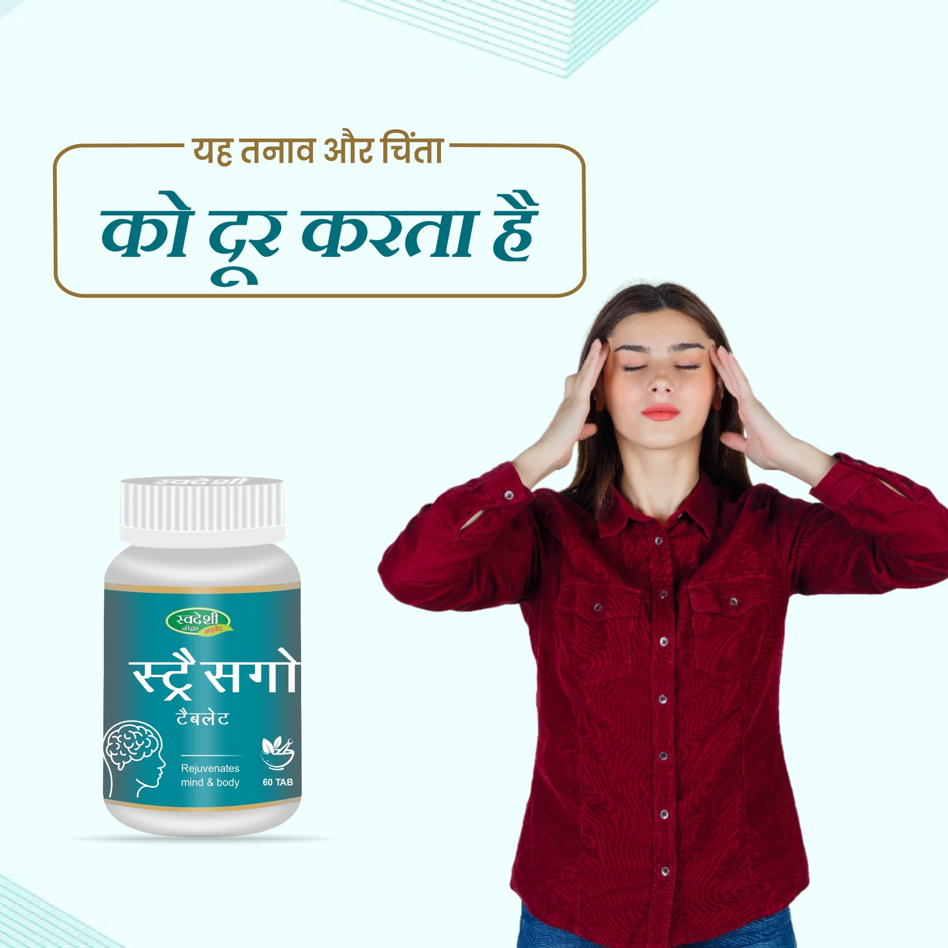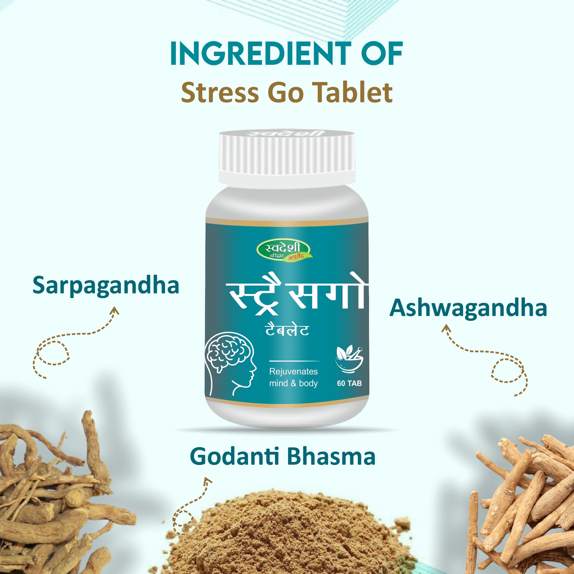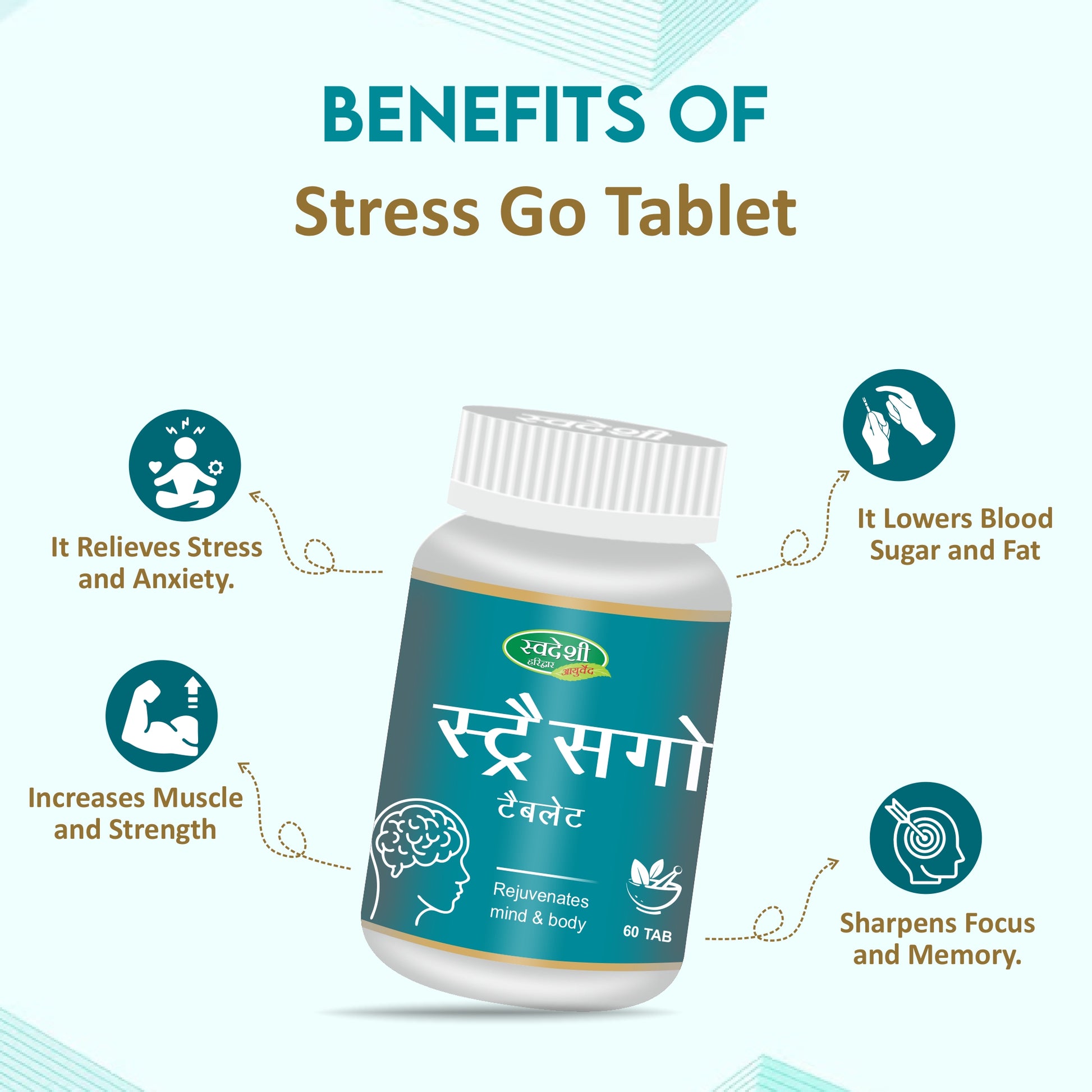 स्वदेशी स्ट्रेस गो कैप्सूल एक एंटी-स्ट्रेस टैबलेट है। यह दवा तंत्रिका तंत्र के लिए एक सहायता की तरह काम करती है और एक समग्र स्वास्थ्य पूरक है।