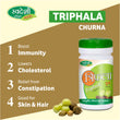 स्वदेशी त्रिफला चूर्ण अपच के लिए एक आयुर्वेदिक सूत्र है जिसमें उच्च रेचक गुण हैं और यह अपने कोलन क्लींजिंग और डिटॉक्सीफाइंग क्रियाओं के लिए जाना जाता है। यह विटामिन सी, कैल्शियम, आयरन और जिंक का एक समृद्ध स्रोत है। यह सूत्र पाचन समस्याओं के लिए फायदेमंद है और पाचन कार्यों को सुसंगत बनाकर और पेट को साफ करके समग्र स्वास्थ्य को बनाए रखने में मदद करता है।