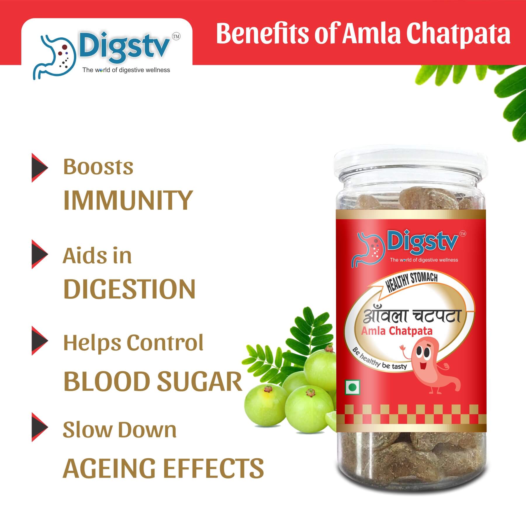 Digstv Amla Chatpata Candy is a delicious and tangy treat made with the goodness of Amla (Indian Gooseberry). Known for its natural detoxifying properties, this candy is rich in antioxidants and Vitamin C, which help boost immunity, improve digestion, and support overall skin, hair, and body health. It's the perfect blend of taste and health, offering a natural way to stay fit and energetic.