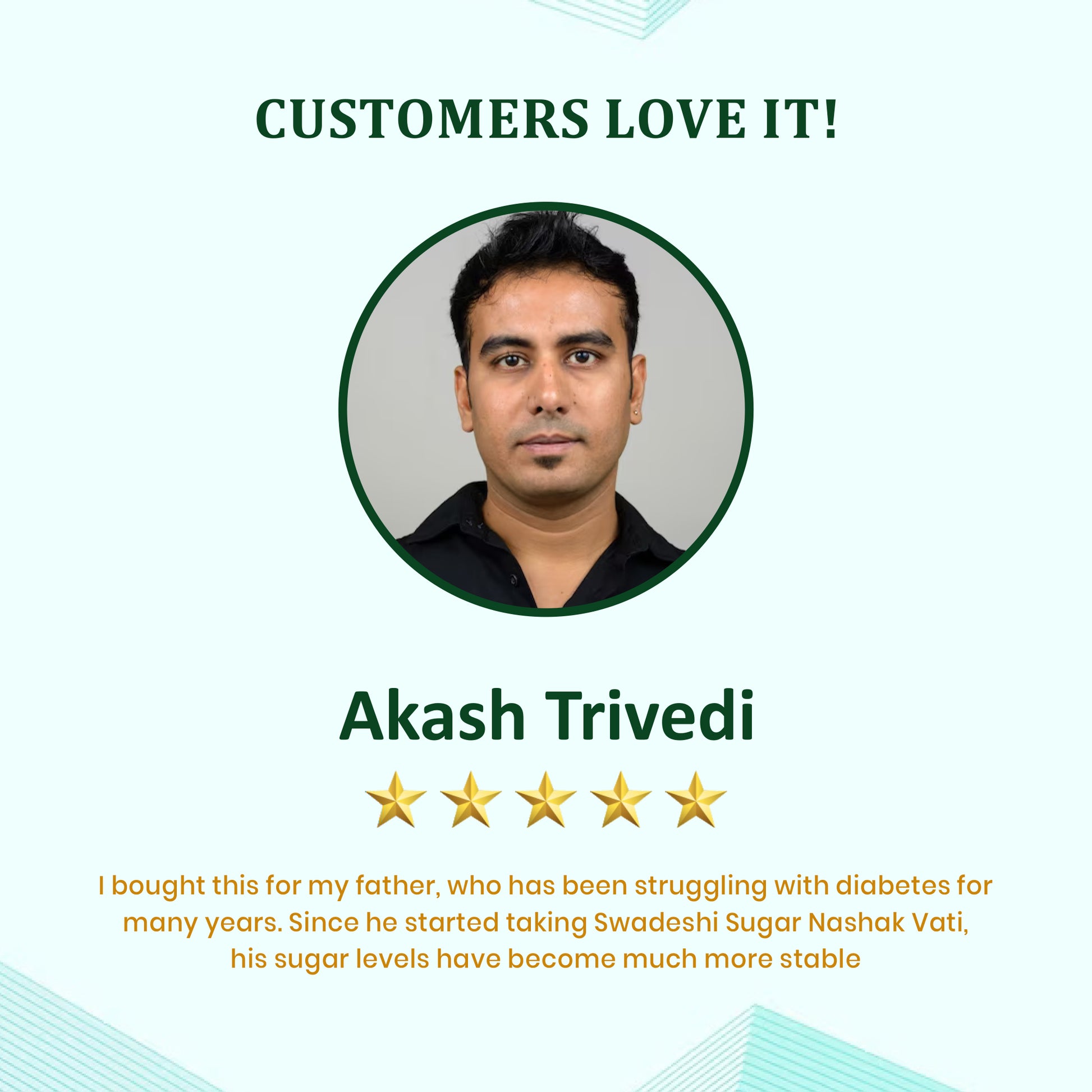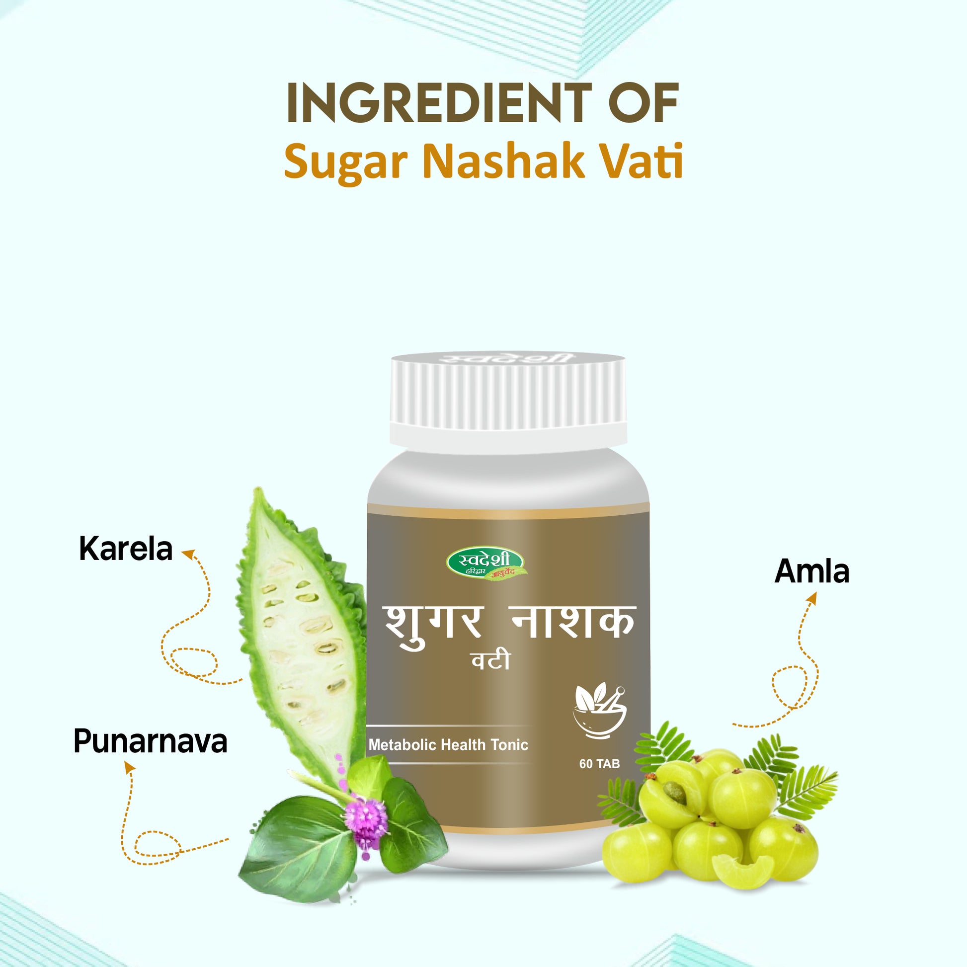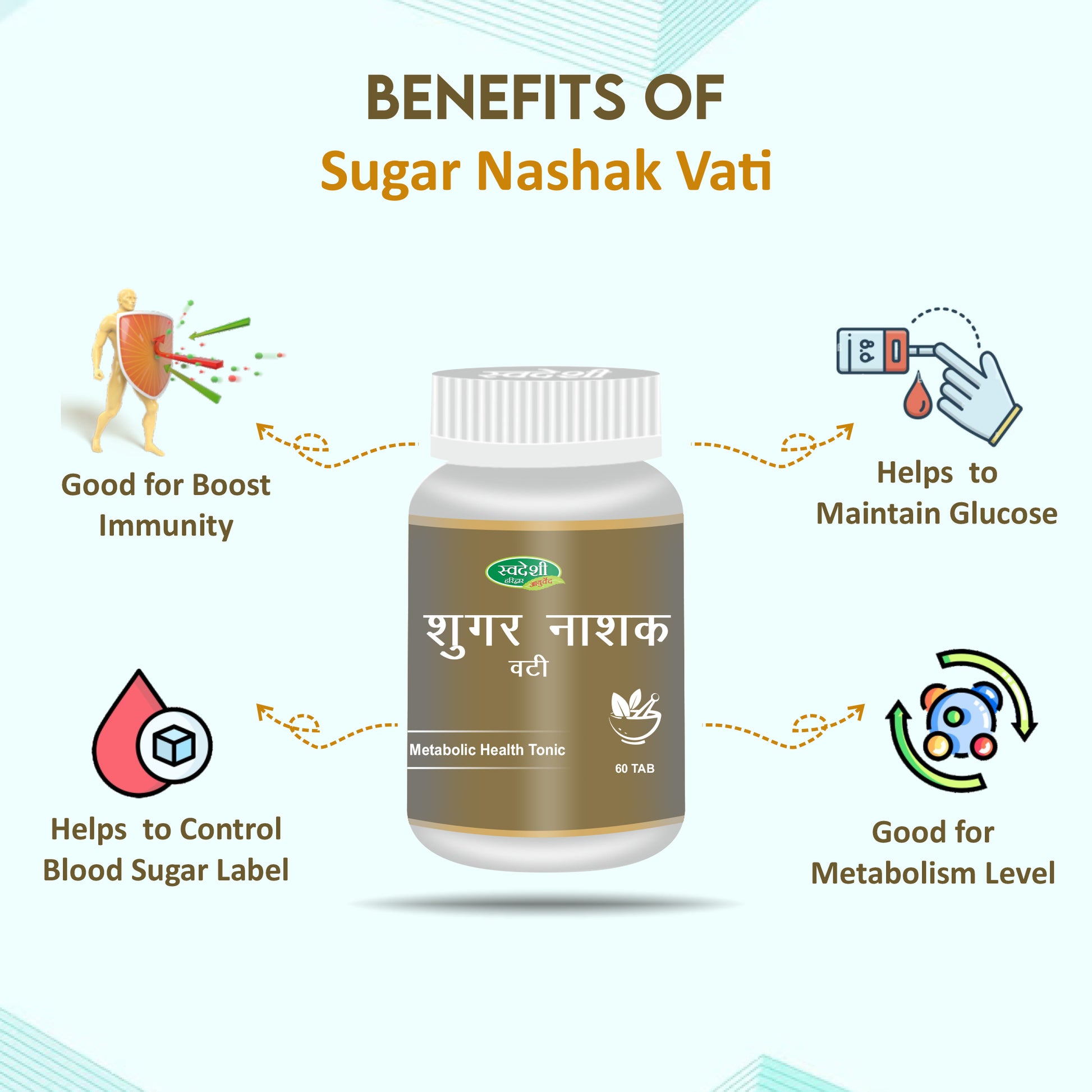 Swadeshi Sugar Nashak Vati has an anti-diabetic, antioxidant, and immunomodulatory effect to provide protection from diabetes and its harmful complications.