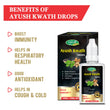 1. Relief from Cough and Respiratory Issues: Take Swadeshi Ayush Kwath Drop as directed to experience relief from cough and respiratory discomforts, making breathing easier and more comfortable.