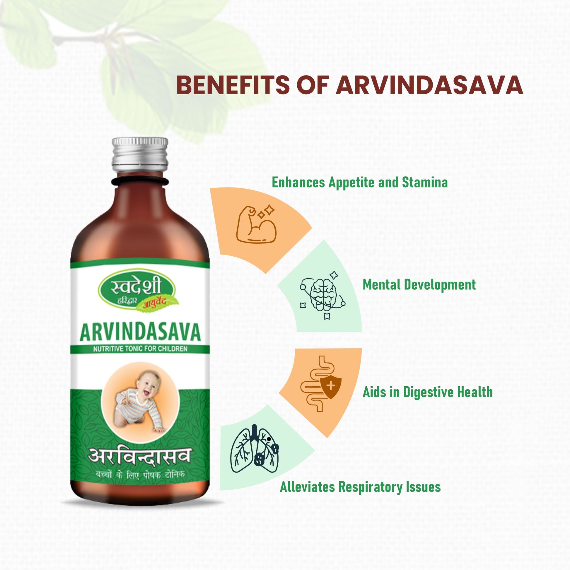 Relieves Respiratory Discomfort: With its natural cough-suppressing properties, Arvindasava helps alleviate symptoms of recurrent cough and bronchitis, ensuring your child breathes easier.