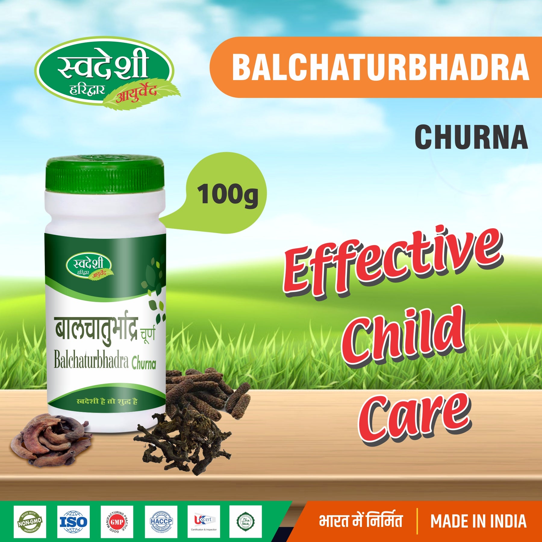 Swadeshi Balchaturbhadra Churna is a powerful combination of herbs that helps to relieve the discomfort associated with colic, infant gas, stomach ache, eating, and reflux. It also allows a baby's digestive system to adjust to new foods and relieves stomach discomfort.