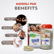 The presence of nutritional ingredients in Musli Pak helps to increase muscle strength, and reduces muscle tiredness and fatigue. It is beneficial in increasing body weight for those who are underweight. It contains Safed musli which naturally helps to boost fertility in males. It helps women with the treatment of leucorrhoea.