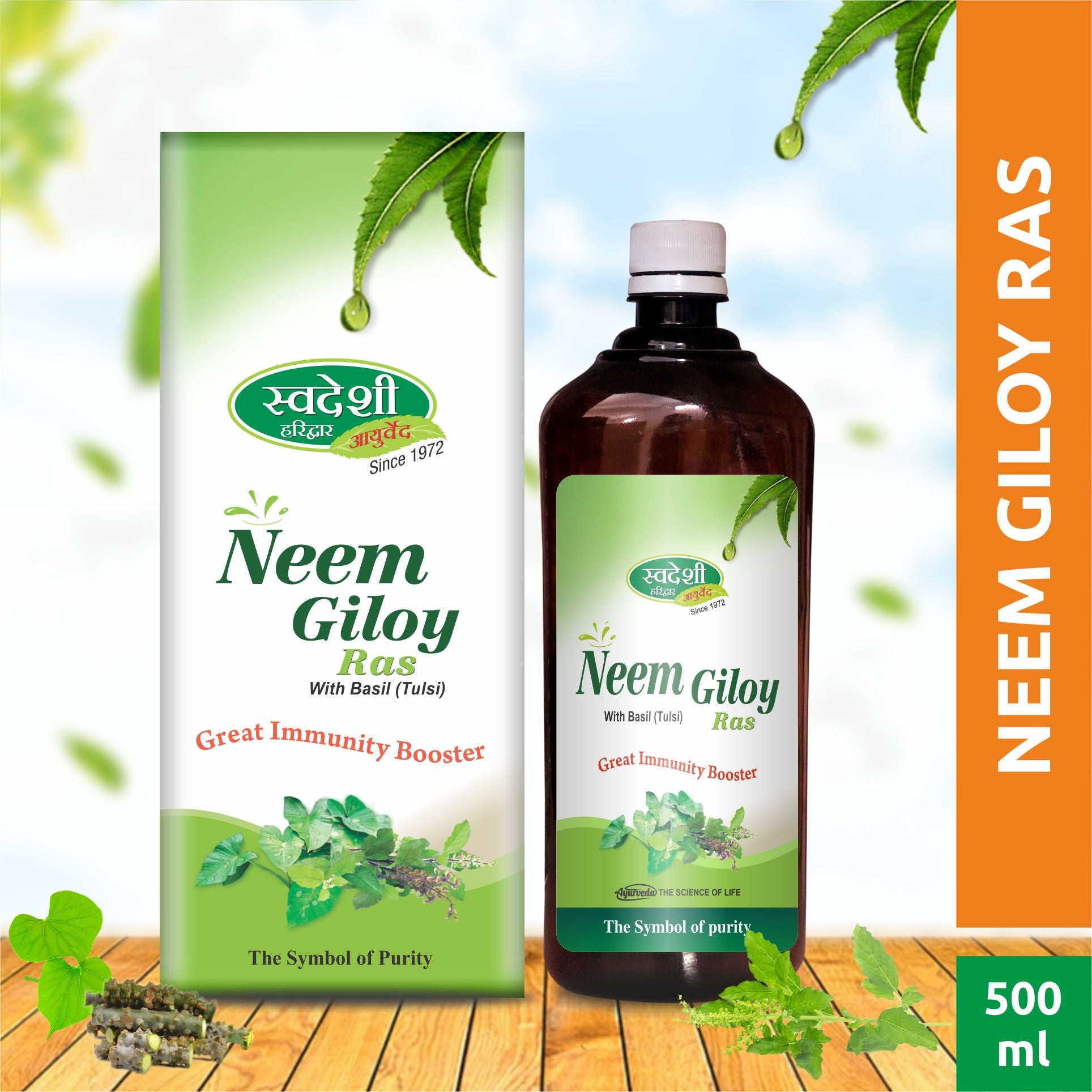 Swadesi Neem Giloy Ras is a herbal combination of Neem and Giloy. This drink is useful to prevent skin diseases and to purify blood. No artificial colors are added to our to the product.