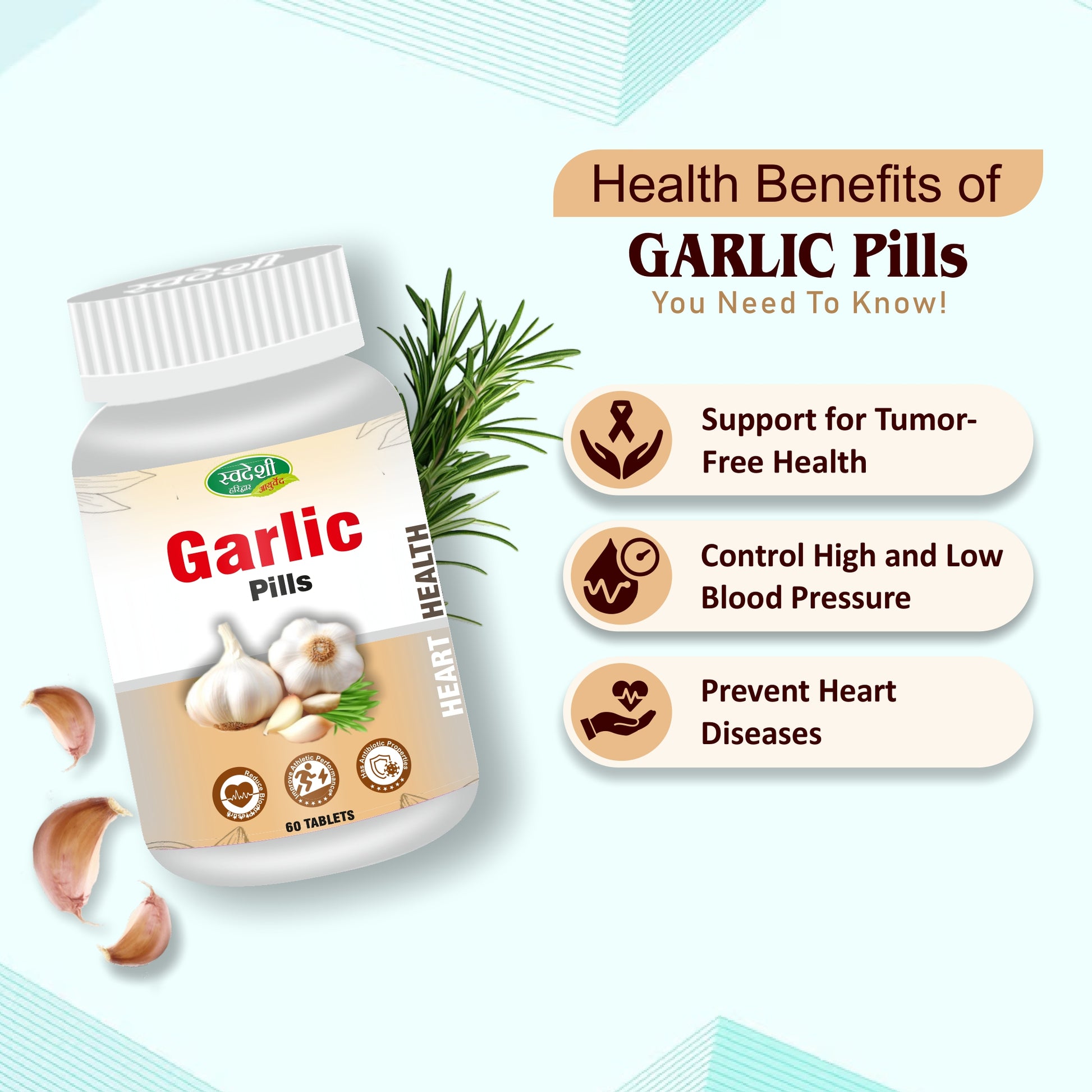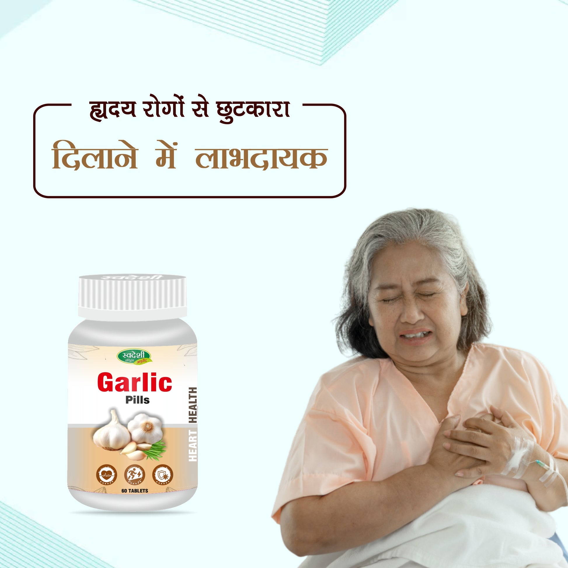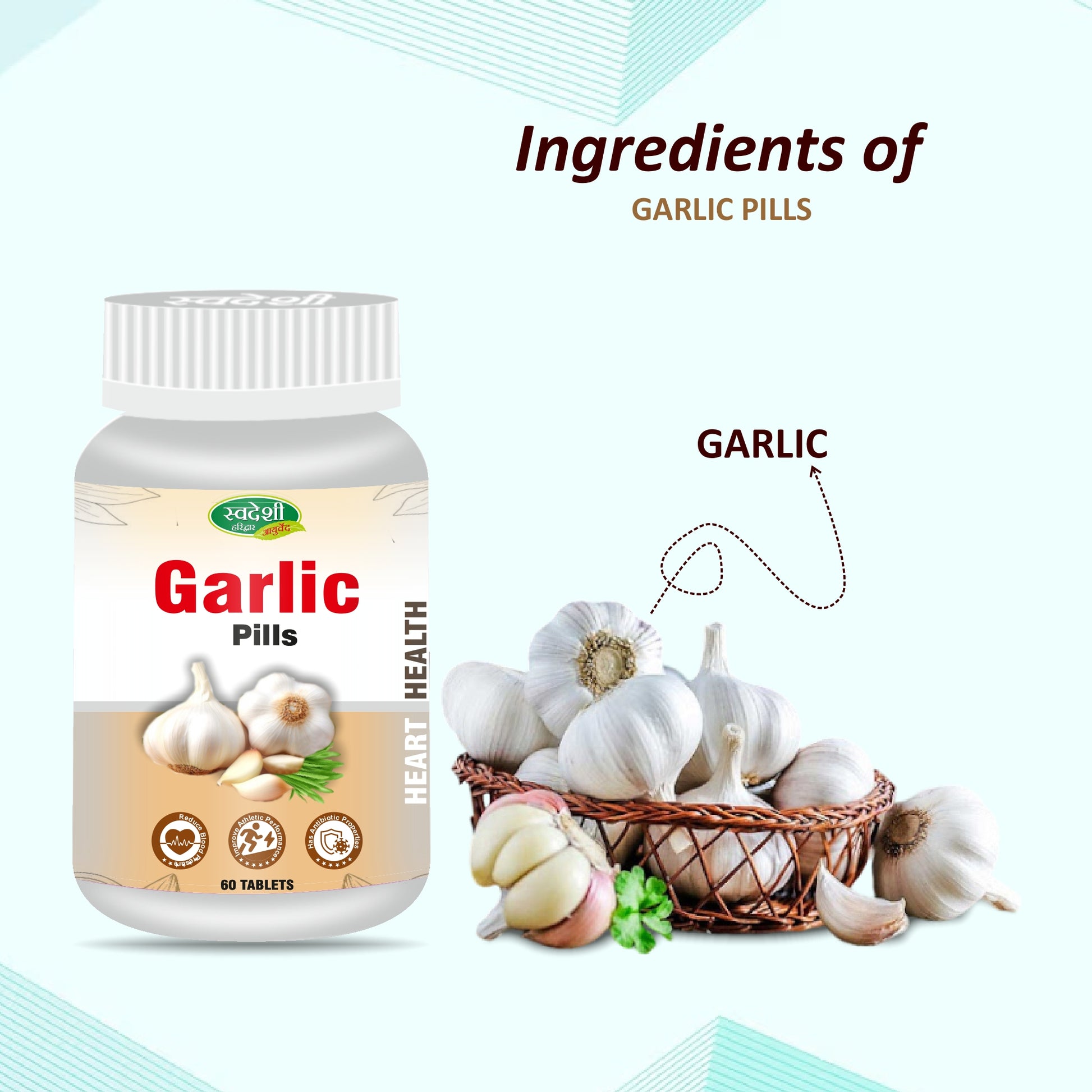 Swadeshi Garlic pills are a great dietary supplement meant to enhance the body's overall health. Allicin is the primary element of Garlic and it helps in improving blood lipid levels. Garlic has been used since ancient times as a supplement to improve heart health and has multiple health benefits.