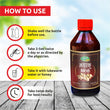 10 - 20 ml రోజుకు రెండుసార్లు నీరు/తేనెతో లేదా వైద్యుడు సూచించినట్లు.