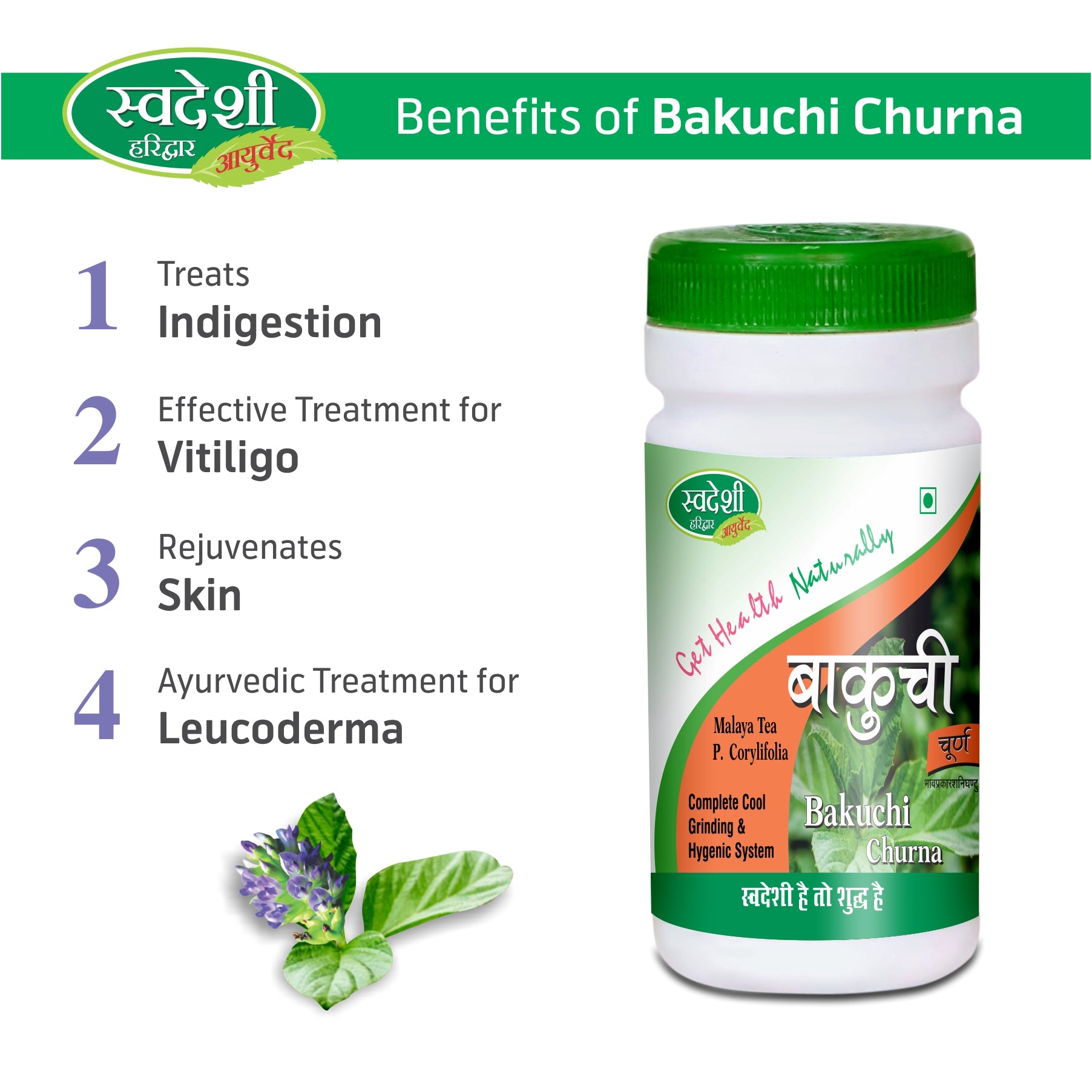 స్వదేశీ బకుచి చూర్ణ చర్మ రుగ్మతలను నయం చేస్తుంది, ఇది ల్యూకోడెర్మా లేదా బొల్లిని నియంత్రిస్తుంది. బకుచి చుర్నా చాలా జాగ్రత్తగా సేకరించిన బకుచి విత్తనాల మంచితనాన్ని మీకు అందిస్తుంది.